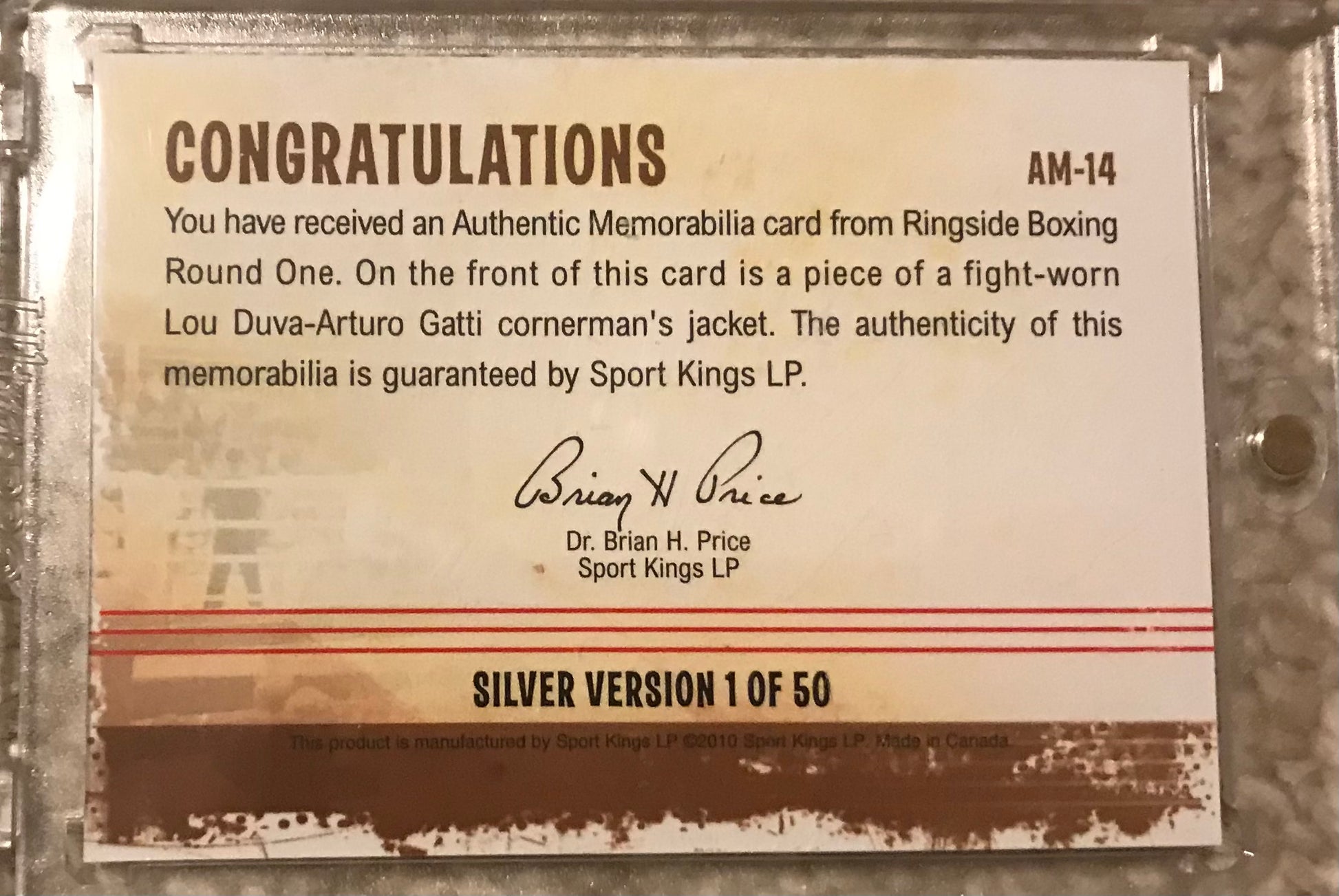 2010 Ringside Boxing Round 1 Lou Duva Authentic Memorabilia AM-14 Fight worn Arturo Gatti Corner jacket silver version 1 of 50