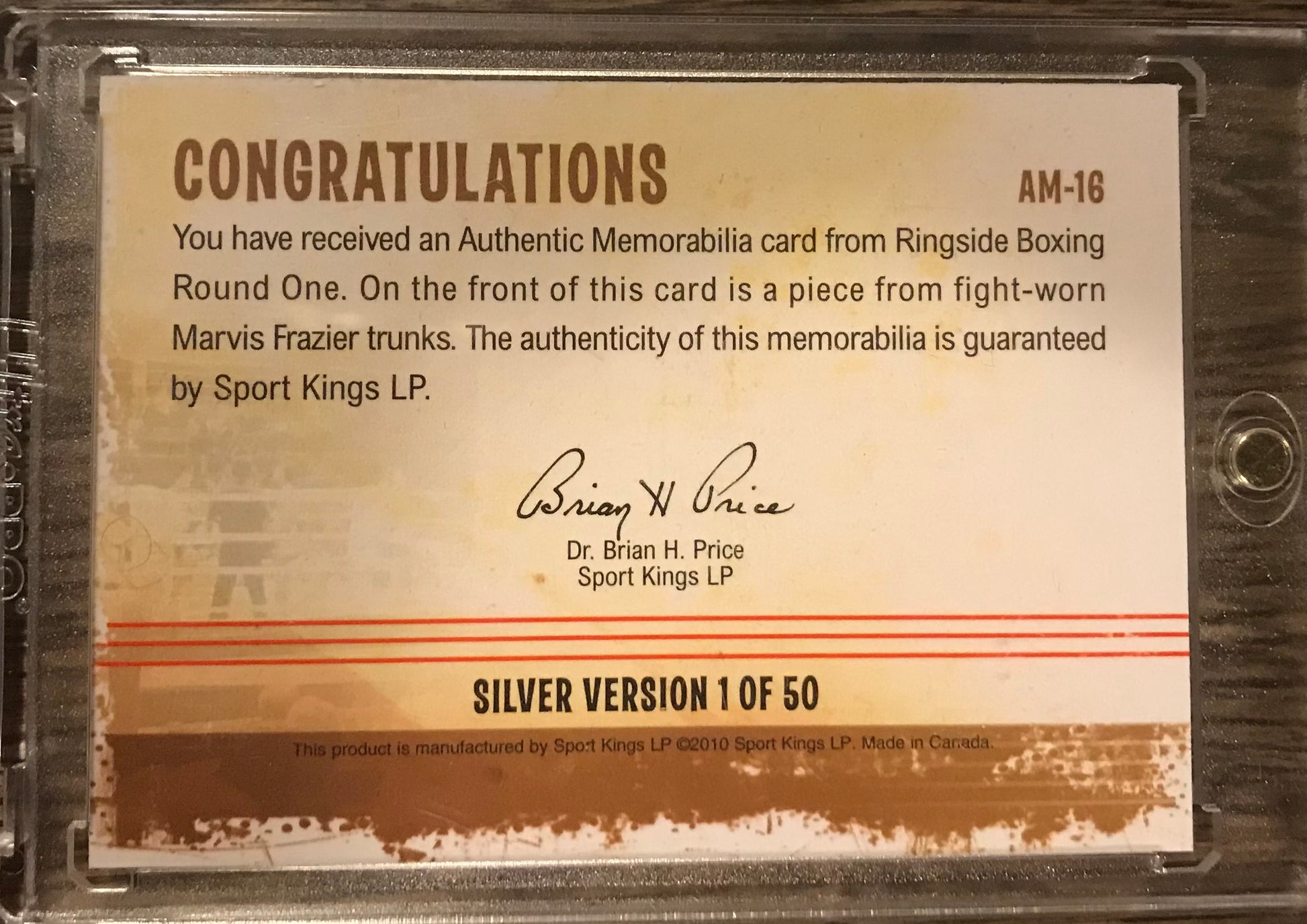 2010 Ringside Boxing Round 1 Marvis Frazier Authentic Memorabilia AM-16 Fight worn trunks silver version 1 of 50
