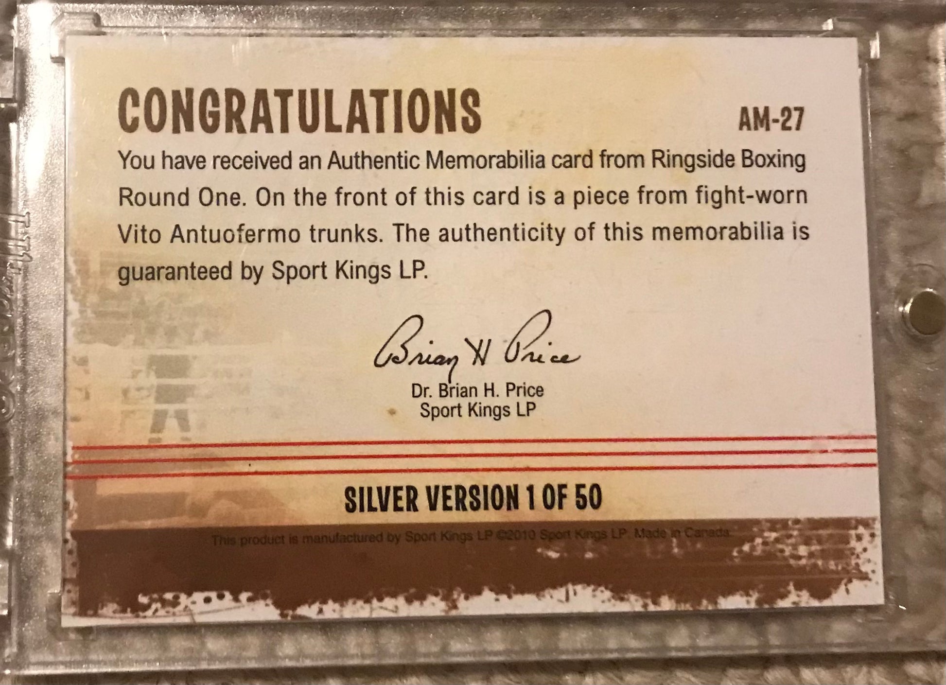 2010 Ringside Boxing Round 1 Vito Antuofermo Authentic Memorabilia AM-27 Fight worn trunks silver version 1 of 50