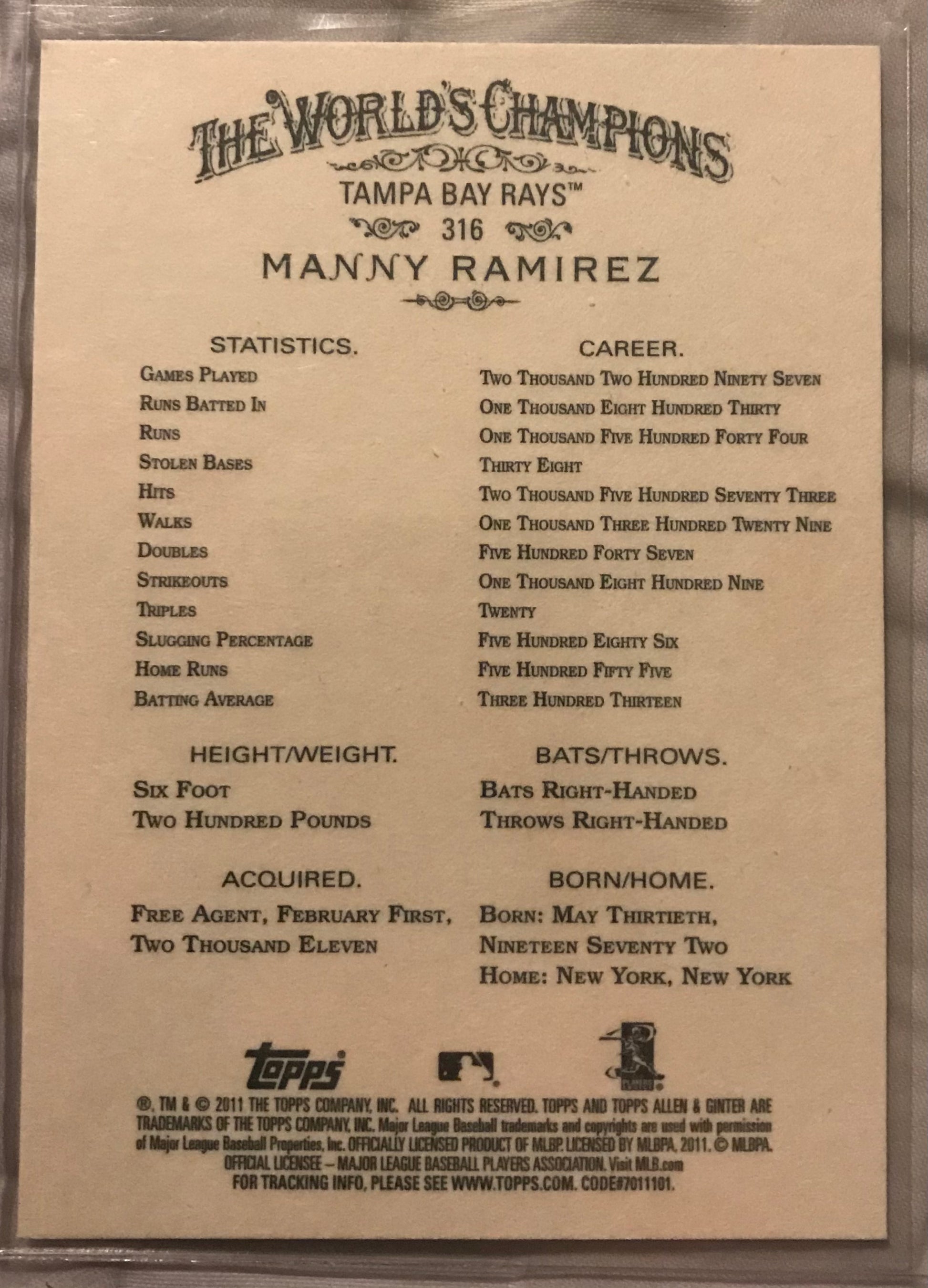 2011 Topps Allen & Ginter Manny Ramirez code parallel #316