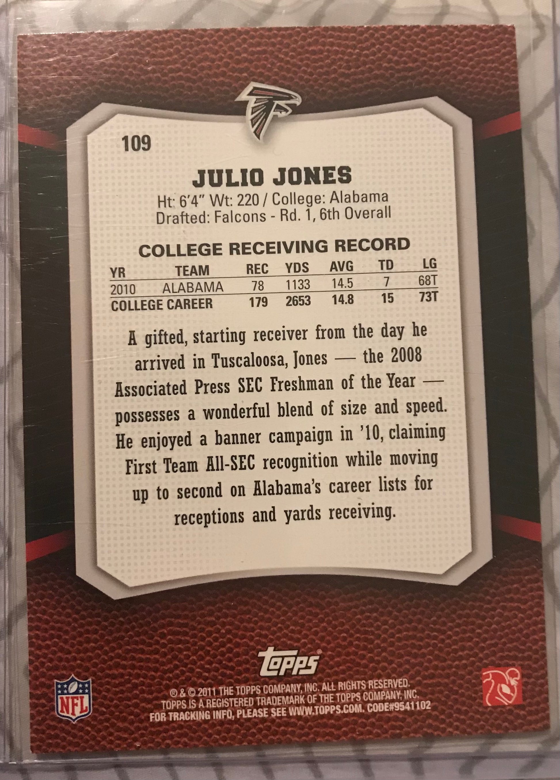 2011 Topps Rising Rookies Rookie rc Julio Jones gold #109
