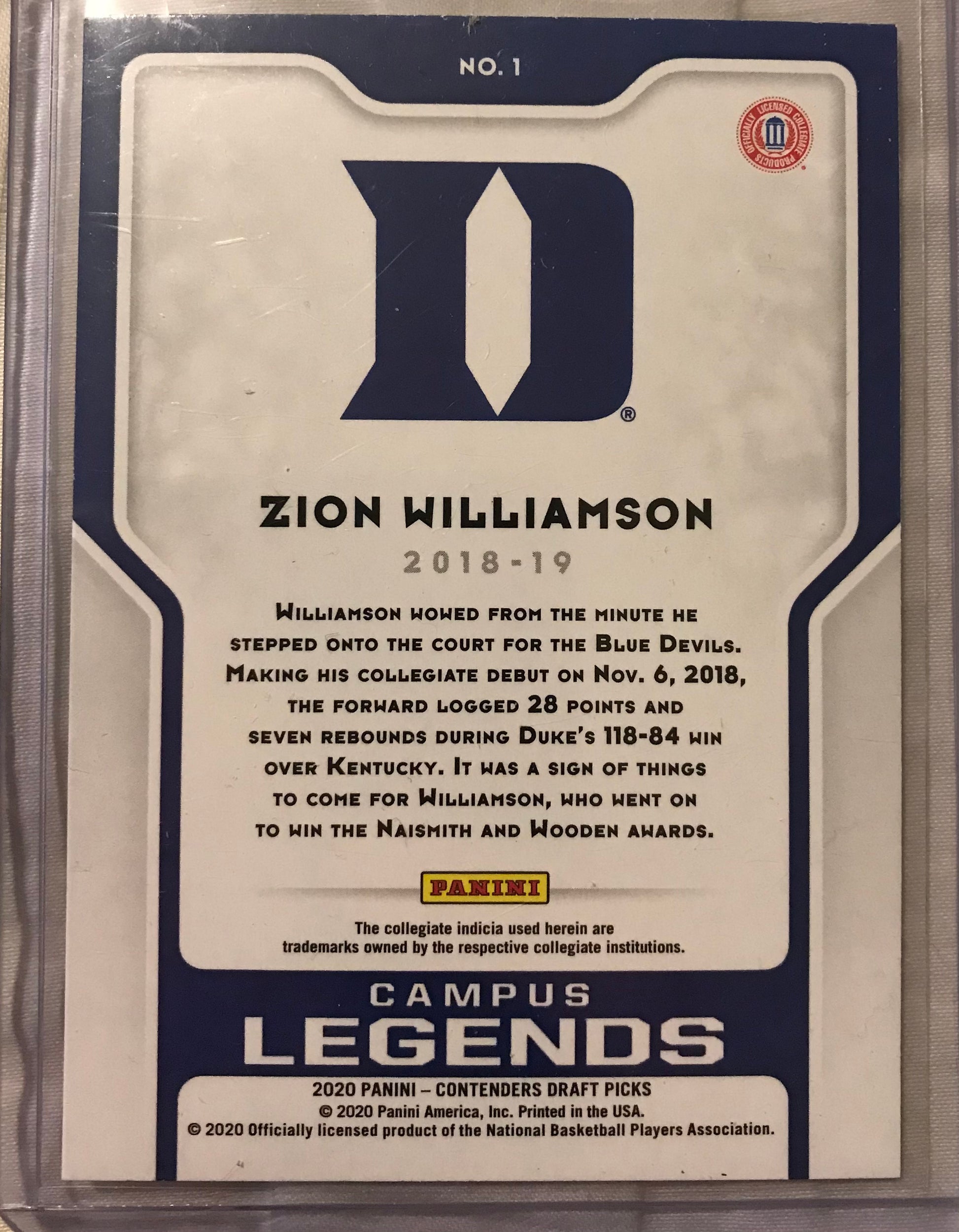 2020-21 Panini Contenders Draft Picks Campus Legends #1 Zion Williamson