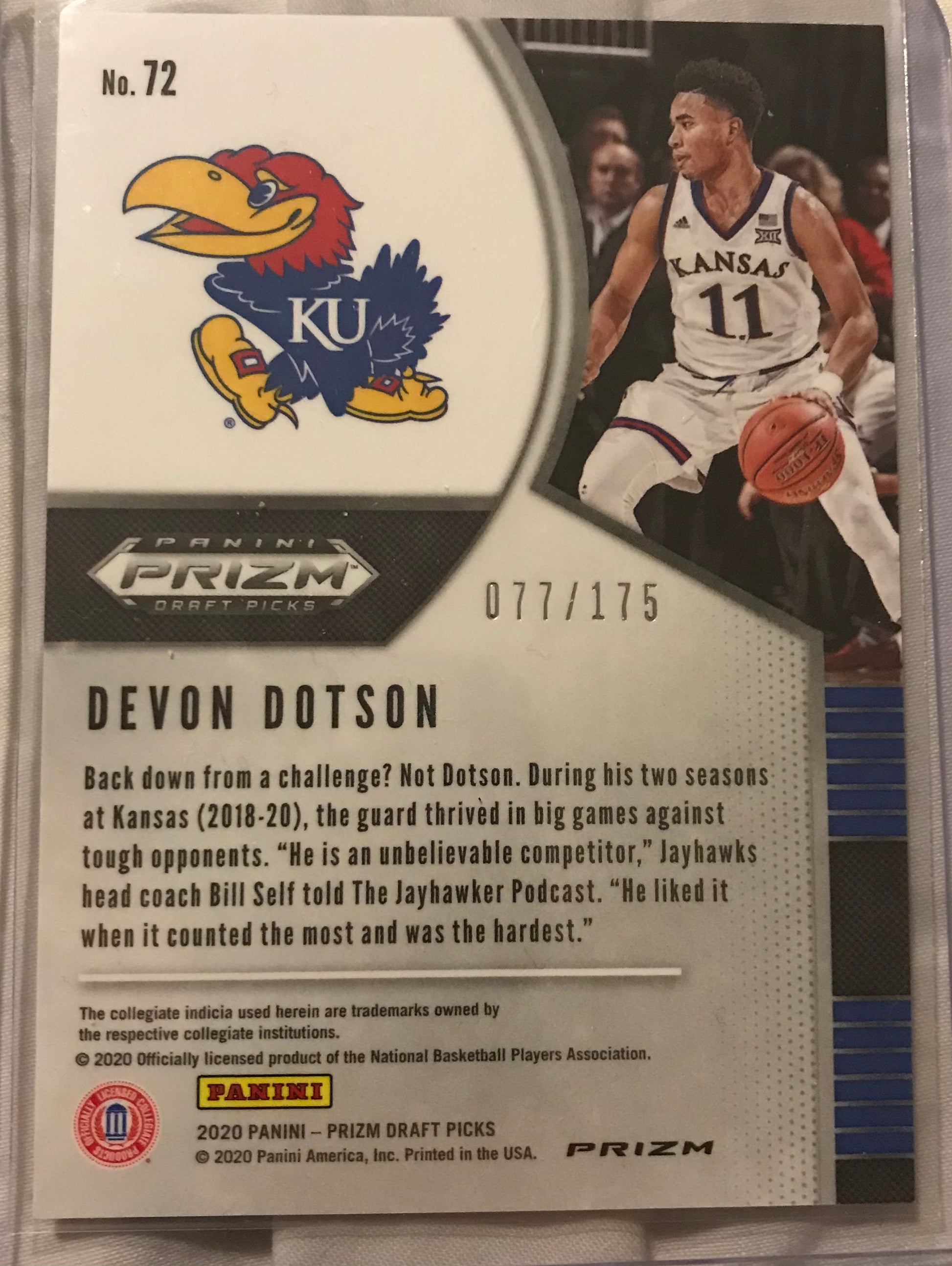 2020-21 Panini Prizm blue disco fast break Devin Dotson rookie rc #72 77/175