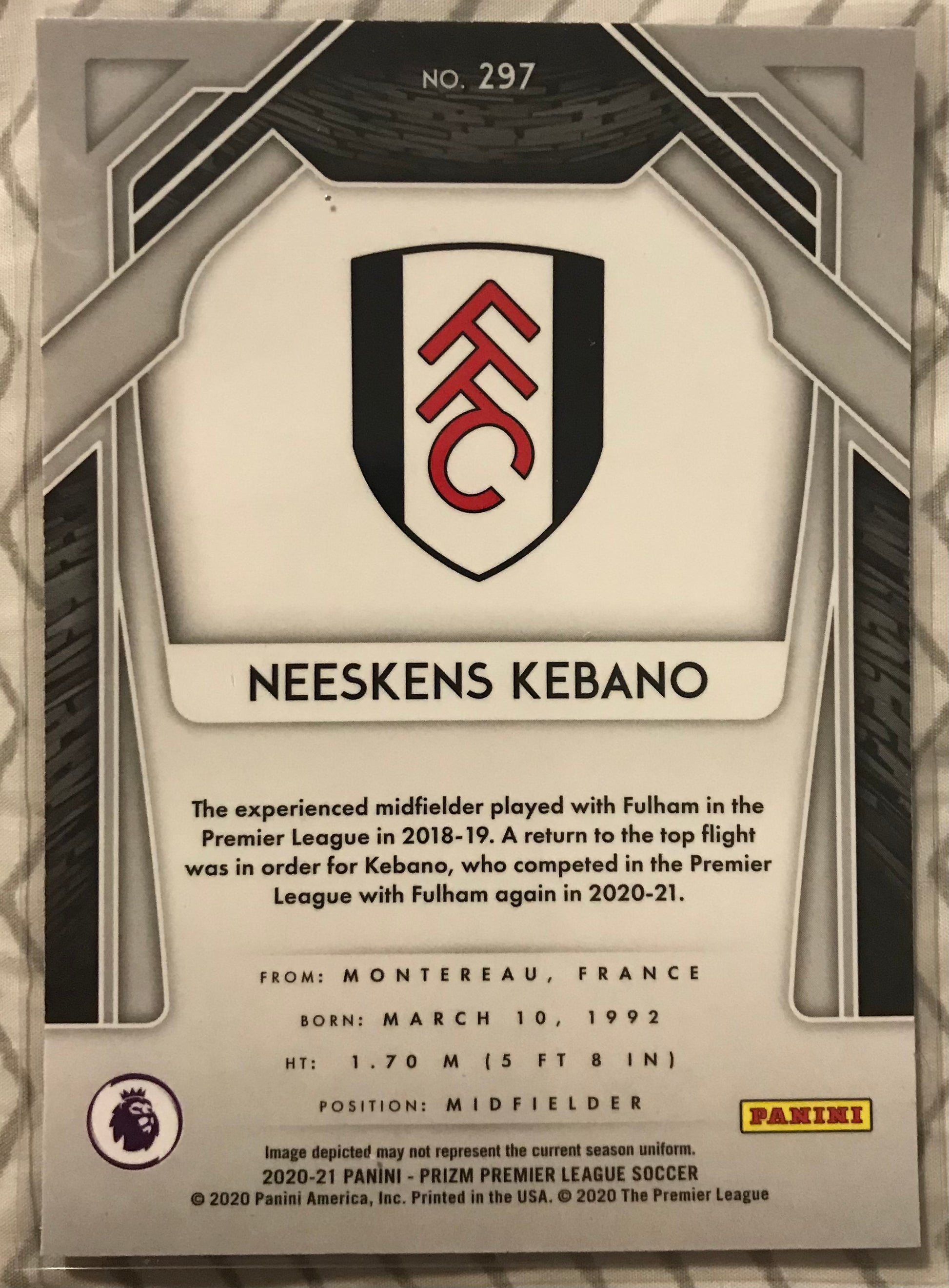 2020/21 PANINI PRIZM PREMIER LEAGUE NEESKENS KEBANO ROOKIE #297 FULHAM rc