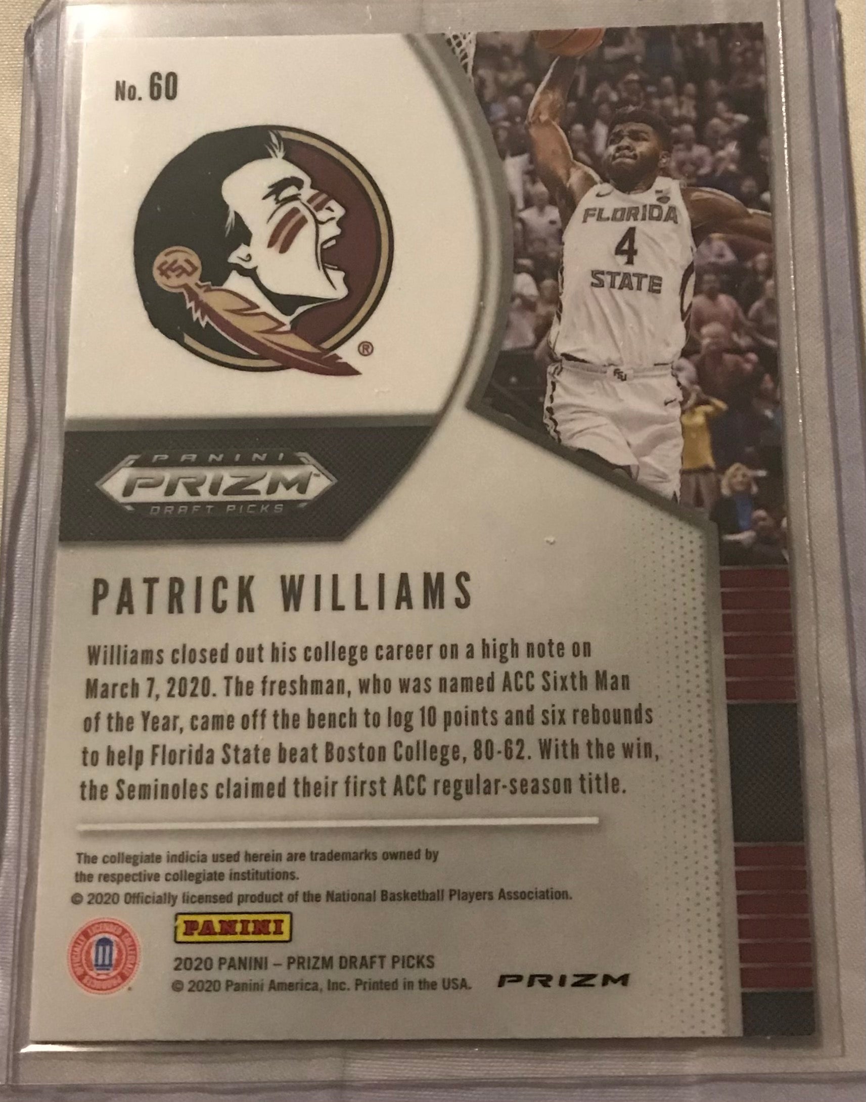 2020-21 Panini Prizm silver disco fast break Patrick Williams rookie rc #60