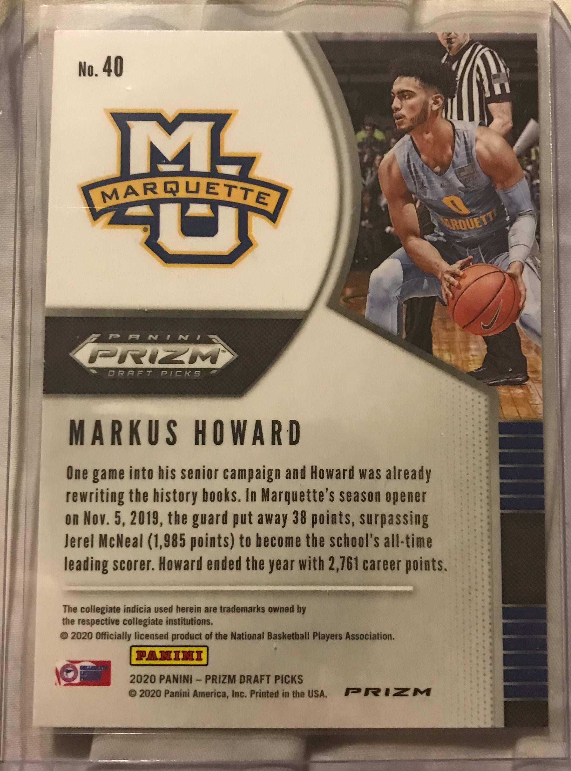 2020-21 Panini Prizm silver Markus Howard rookie rc #40