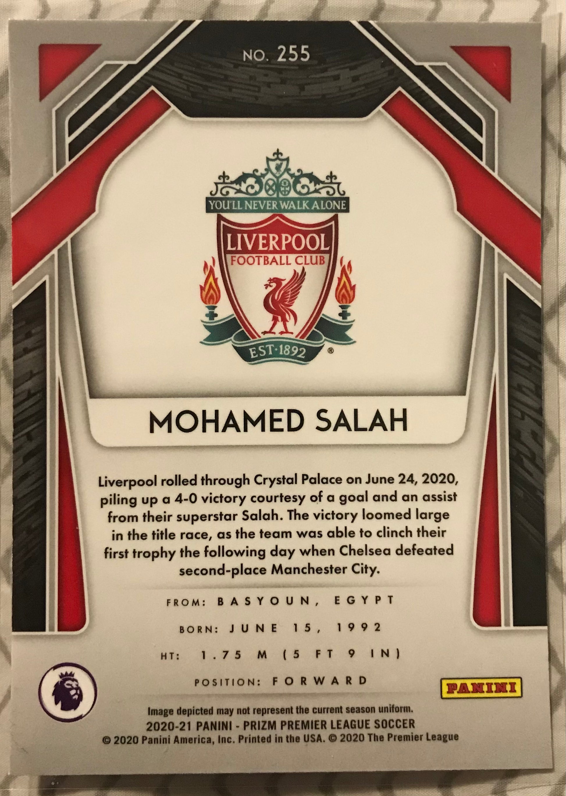 2020-21 Prizm Premier League Soccer EPL Mohamed Salah Base #255 Liverpool FC