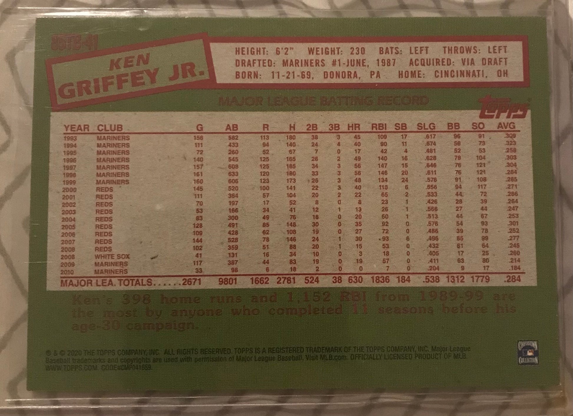 2020 Topps Update KEN GRIFFEY JR. 1985 Topps Insert Seattle Mariners #85TB-41