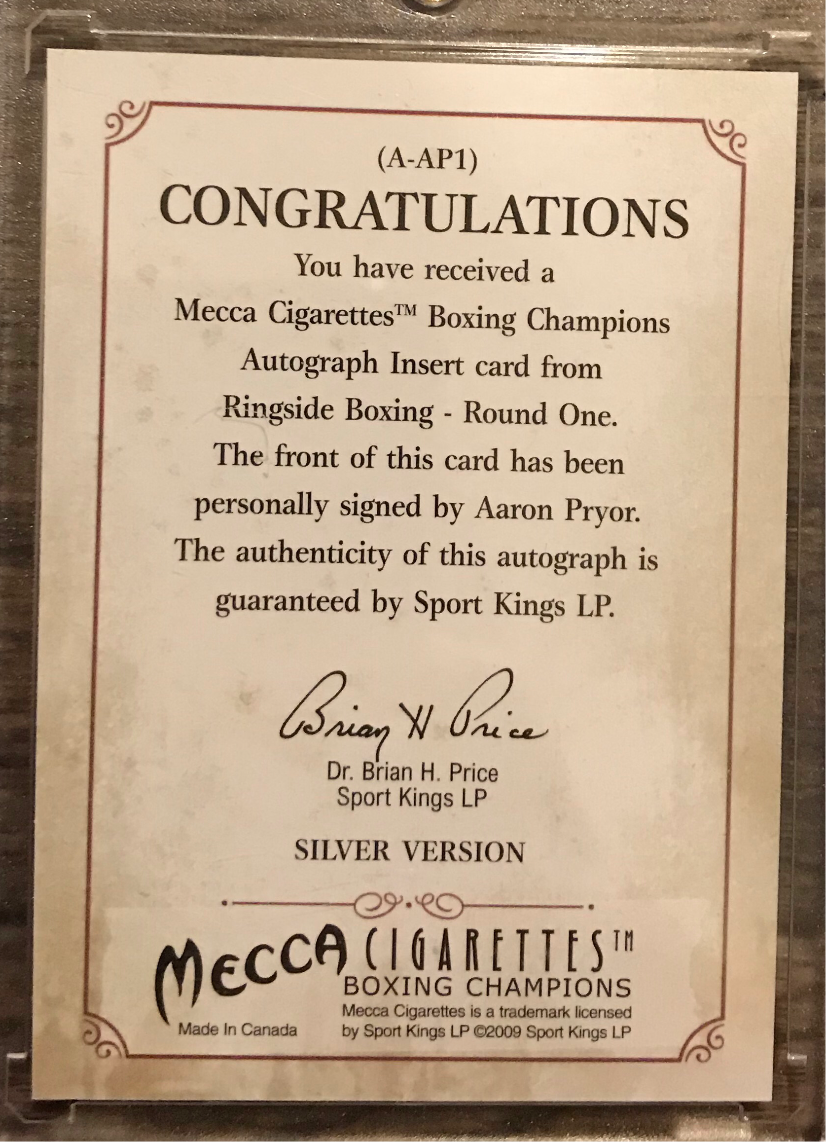Ringside Boxing Round 1 Aaron Pryor A-AP1 silver auto /90