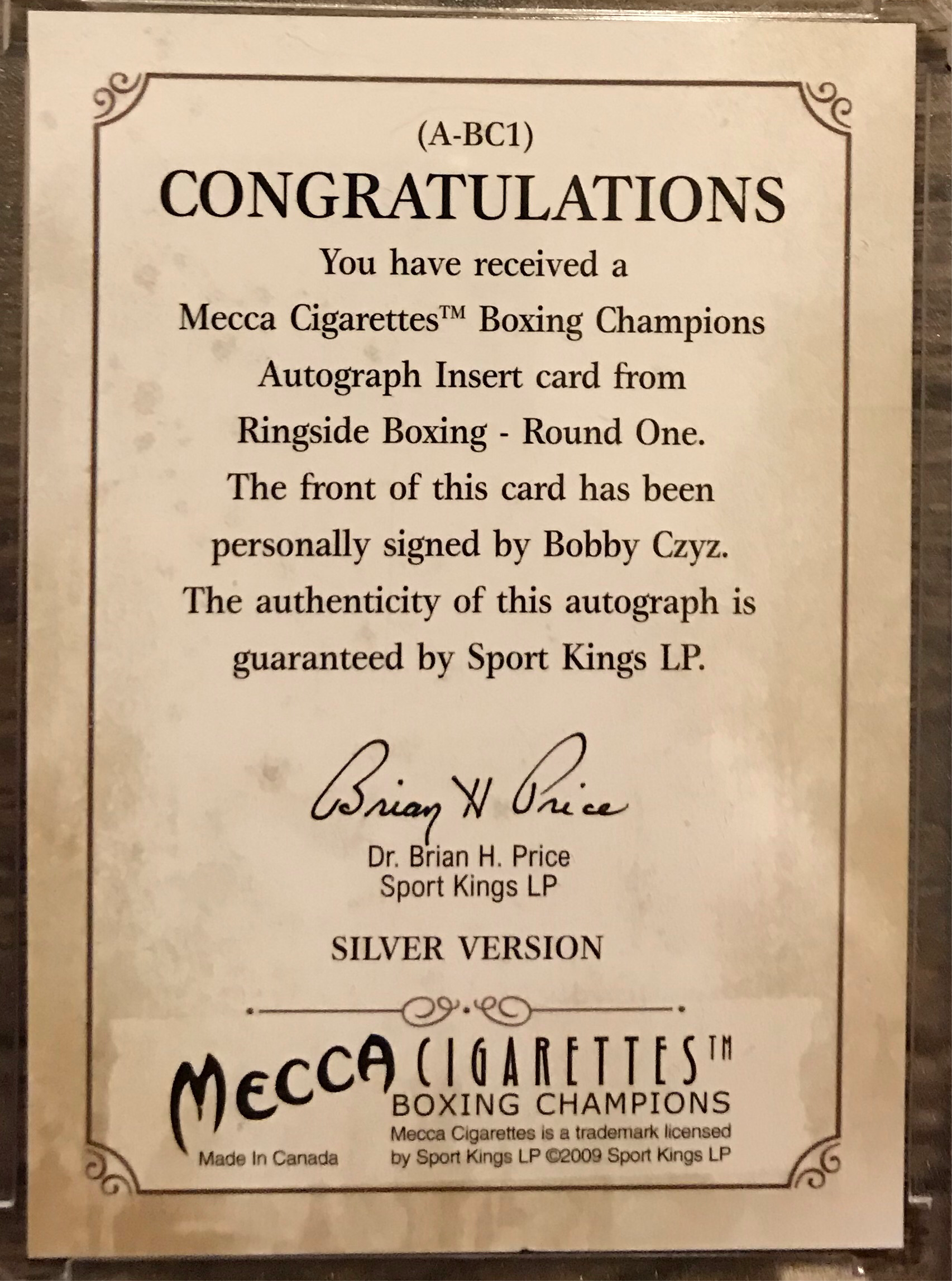 Ringside Boxing Round 1 Bobby Czyz A-BC1 silver auto /90