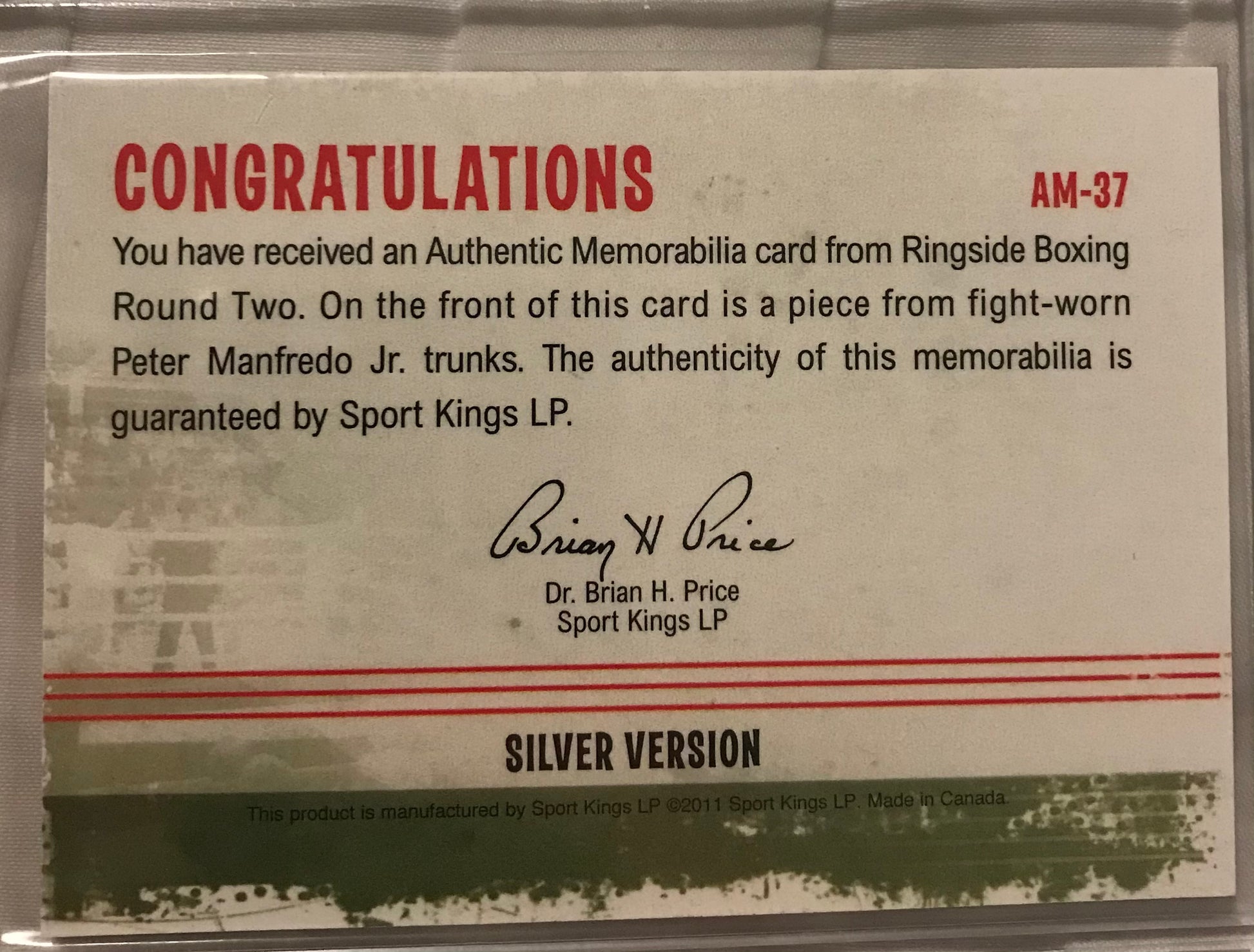 Ringside boxing round 2 Peter Manfredo Jr trunks relic AM-37 /78