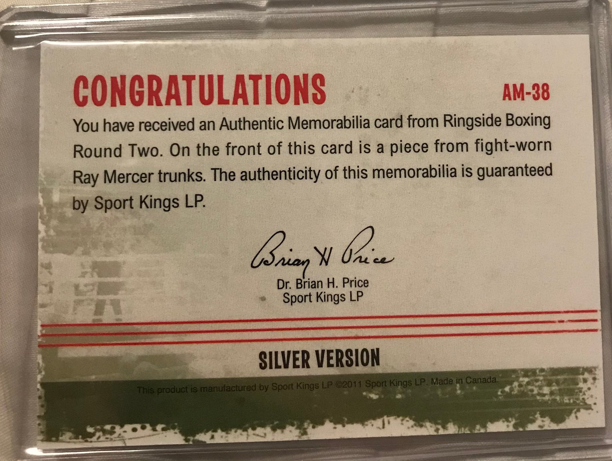 Ringside boxing round 2 Ray Mercer trunks relic AM-38 /78