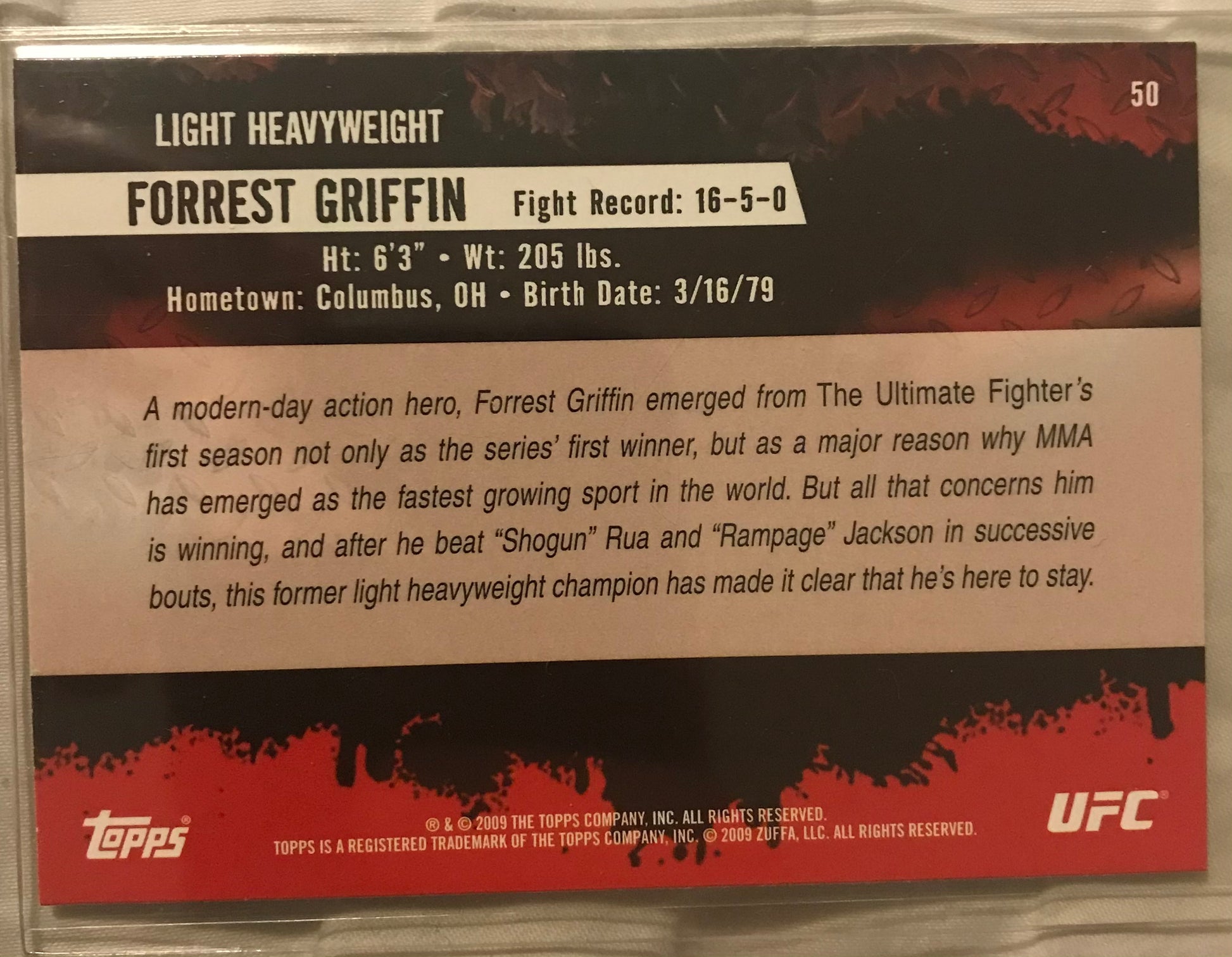 Topps UFC 2009 Round 2- Forrest Griffin #50 rare error missing foil 1/1?